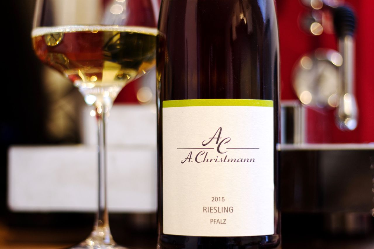 Since the blog here is now supposed to be a wine blog, this was a great excuse to end the weekend on the couch at home. We wanted something fresh, not too exhausting and actually we were keen on Riesling. After the Königsbacher Ölberg a few weeks ago was a blast and another bottle of Gutsriesling in the cellar, it was not a difficult choice. So we chose a Riesling Estate Wine from the Christmann Winery in Gimmeldingen in the Palatinate from 2015. It also fitted the theme of vacation memories since our last short trip went to the Palatinate.