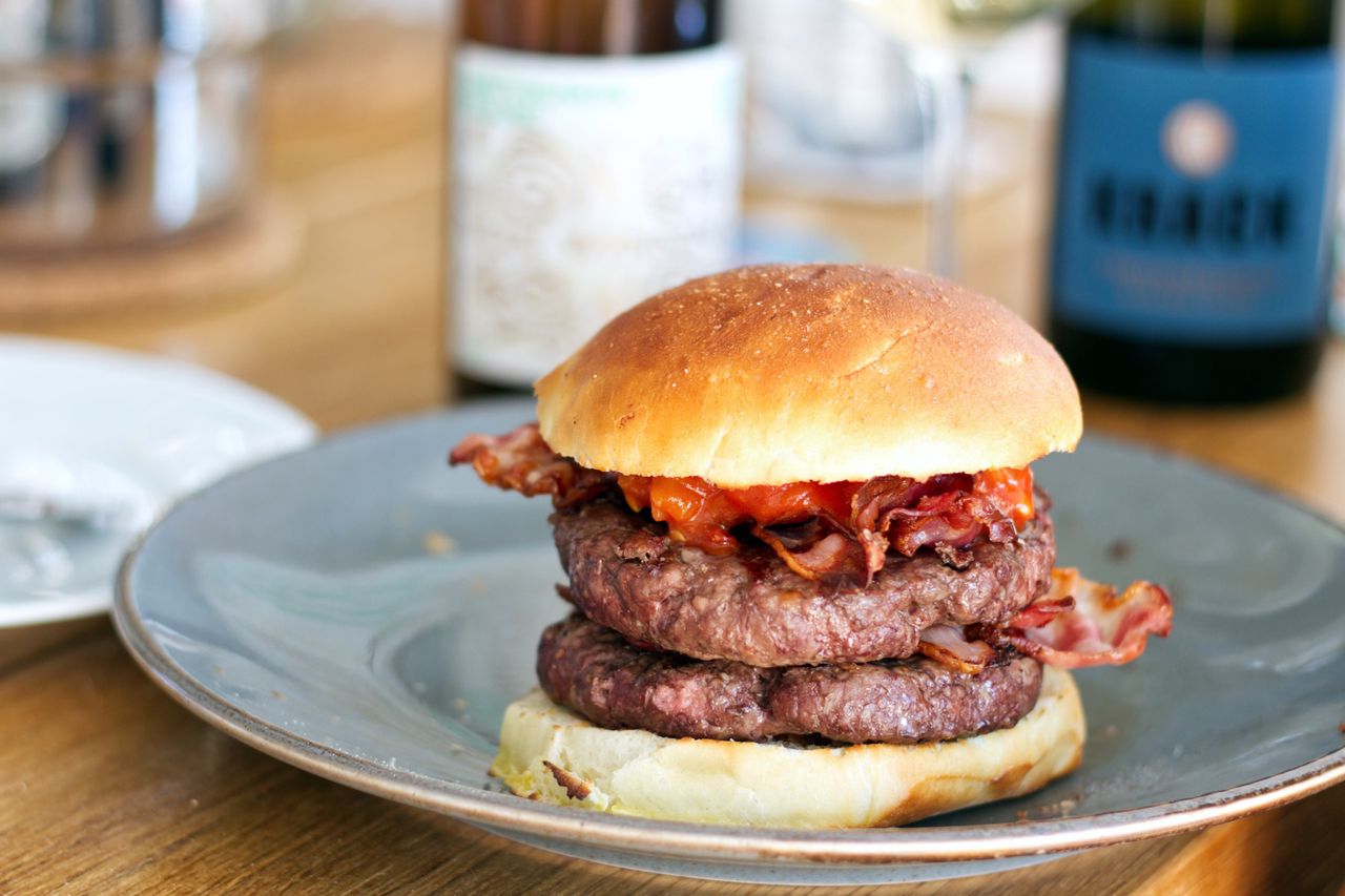 All this goes very well with the burger, the acidity and the bubbles harmonise excellently with the briochebun and the smoky bacon. Who wants to drink beer anyway? As a small side note it should not be neglected that the bottle of Sauvignon Blanc II from von Winning in the background with light green notes and a lot of passion fruit also fitted nicely. Not the biggest fan of Sauvignon Blanc, but for dinner it was a very solid combination.