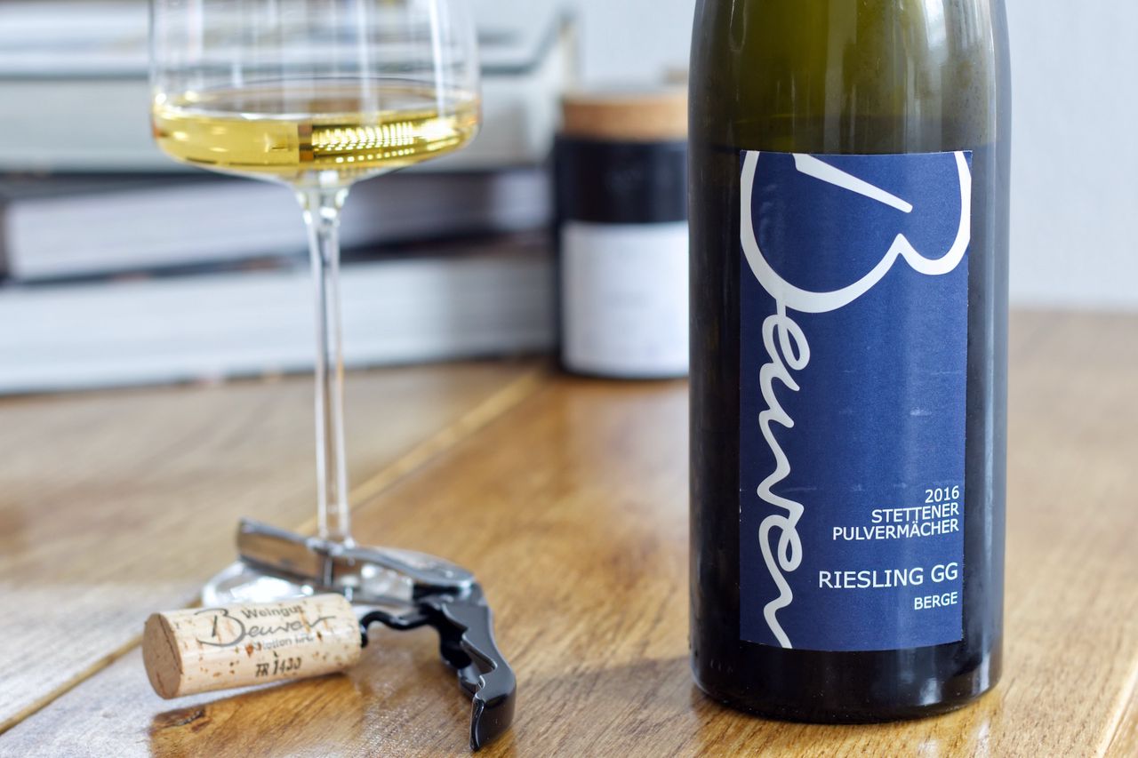 We drink a bottle of Stettener Pulvermächer Riesling GG from the Beurer Winery harvested in 2016 from the beautiful Remstal.