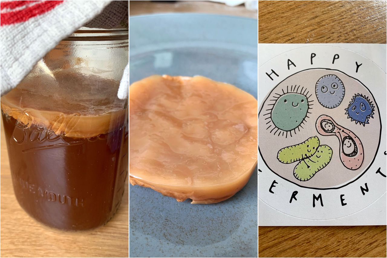 In addition to the wine, a bit of Staffelter Hof has also moved in more permanently with us. In the cover picture you can already see two vessels in the background in which Kombucha is fermenting. Kombucha is made by SCOBY (that’s the slightly disgusting looking slimy thing on top) and it was exactly this SCOBY that we got from a small remnant of Kombucha Chichamorada made from black corn by Yamile Abad. That in turn was part of a Staffelter Hof tasting package with wine and other ferments in April, and growing it on has worked surprisingly well. Beyond the classic kombucha made from tea, a full chapter is now opening up in one of my favorite cookbooks in the “exciting, yet only in parts suitable for re-cooking” category, the Noma Guide to Fermentation. A first experiment with apple juice instead of tea is in the picture. More will follow.