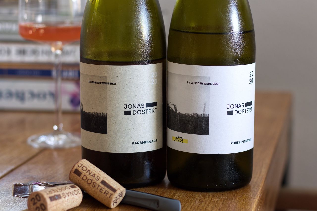 We drink from the Upper Moselle a bottle of Karambolage and a bottle of Pure Limestone from Jonas Dostert.