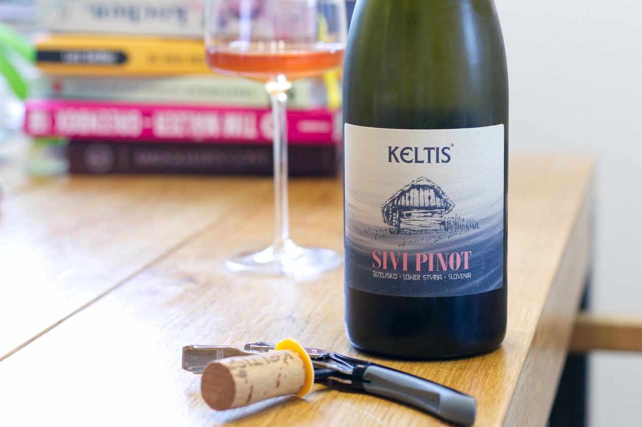 We're drinking a bottle of Keltis Sivi Pinot 2020 from Slovenia, an orange wine made from Pinot Gris.