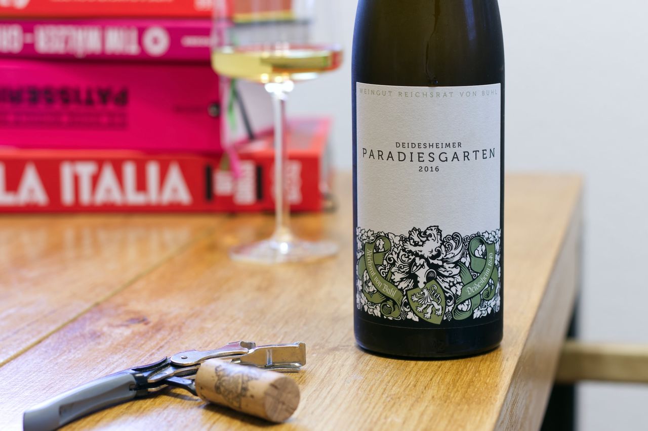 We drink a bottle of 2016 Deidesheimer Paradiesgarten from the Reichsrat von Buhl winery.