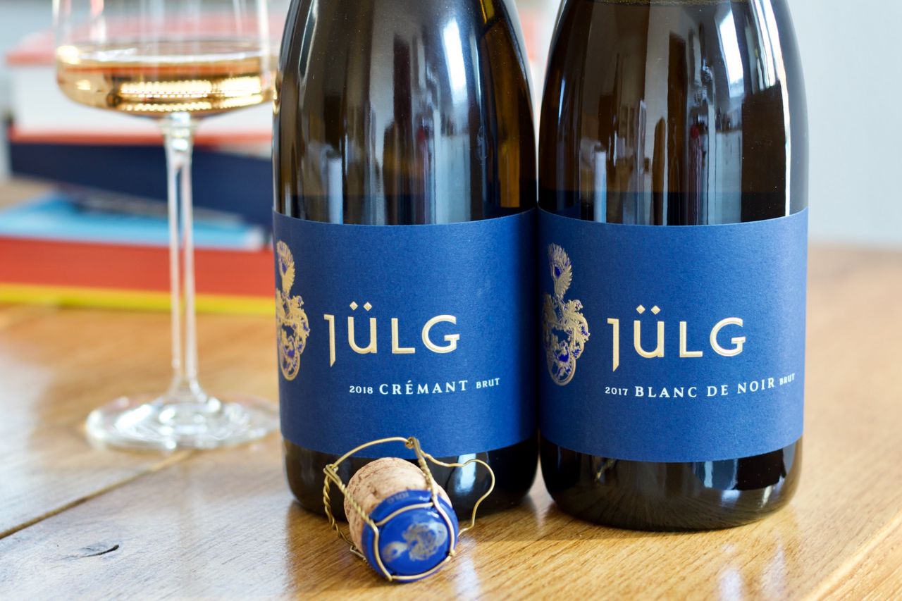 We drink a Crémant from 2018 and a Blanc de Noir from 2017 from the Jülg winery.