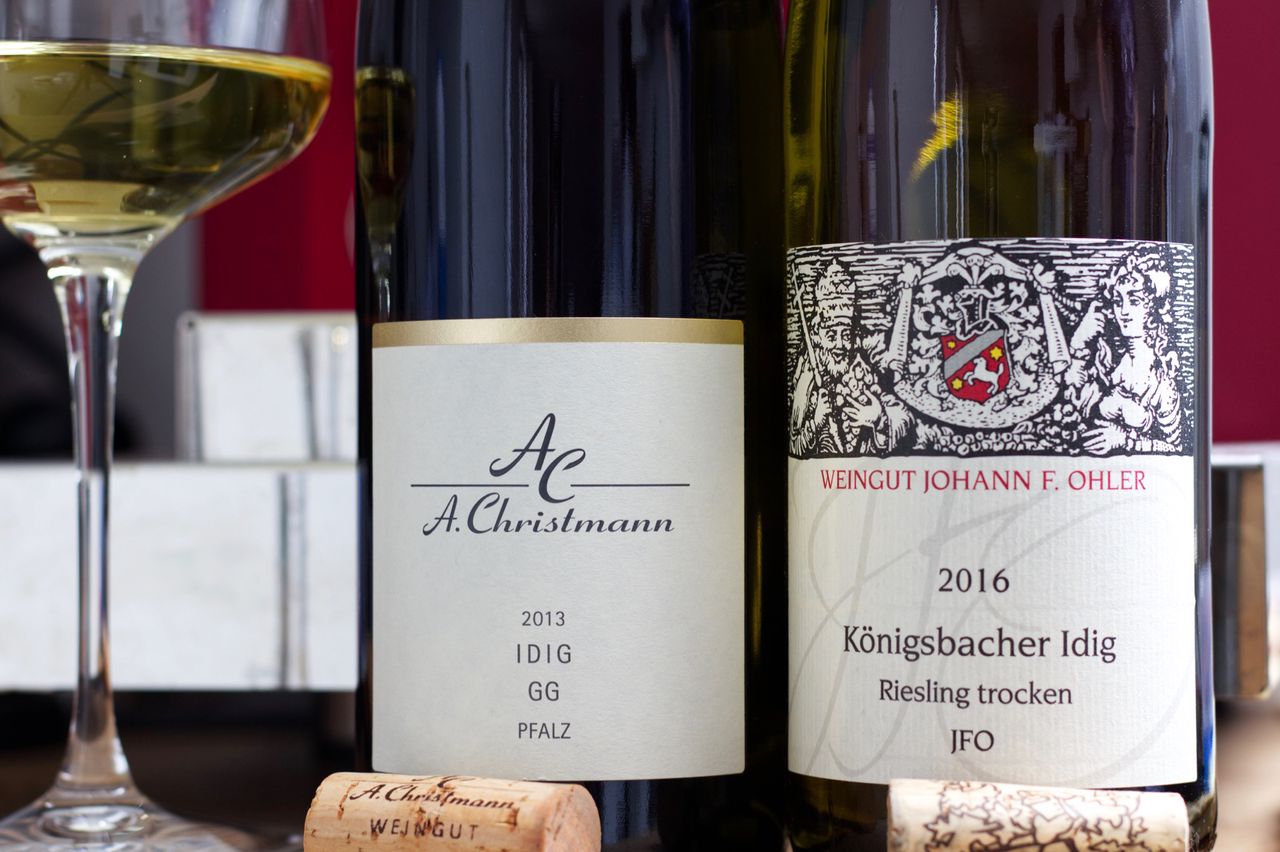 We are having two bottles of Riesling from the Königsbacher Idig vineyard made by winery Christmann and Johann F. Ohler from years 2013 and 2016.