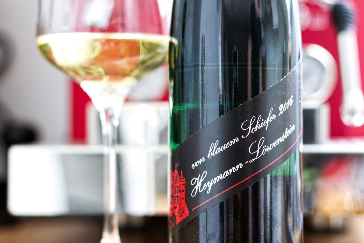 We are having Moselriesling. Made by Heymann-Löwenstein we drink "von blauem Schiefer" harvested in 2016