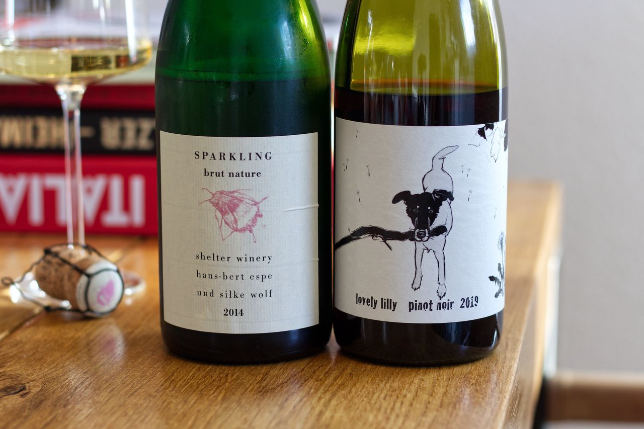 We drink a Spätburgunder Lovely Lilly from 2019 and a bottle of Brut Nature from 2014 from Shelter Winery in Baden.