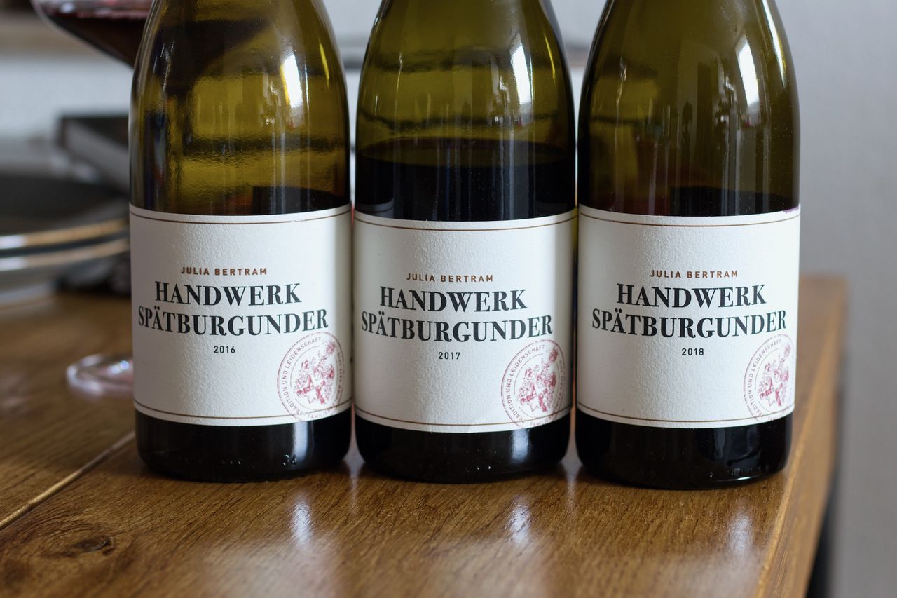 We drink three Spätburgunder Handwerk by Julia Bertram from the years 2016, 2017 and 2018.