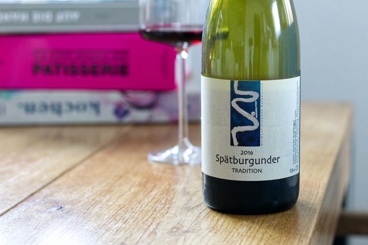 We drink a bottle of Spätburgunder Tradition 2016 from the Franconian winery Richard Östreicher.