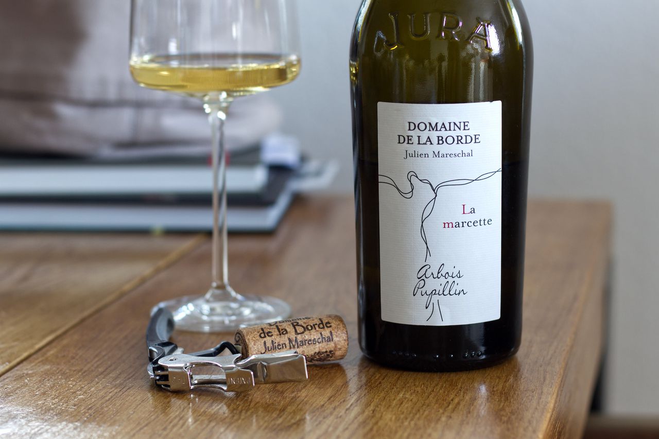 We drink a bottle of Chardonnay La Marcette 2018 from the Domaine de la Borde from Jura.