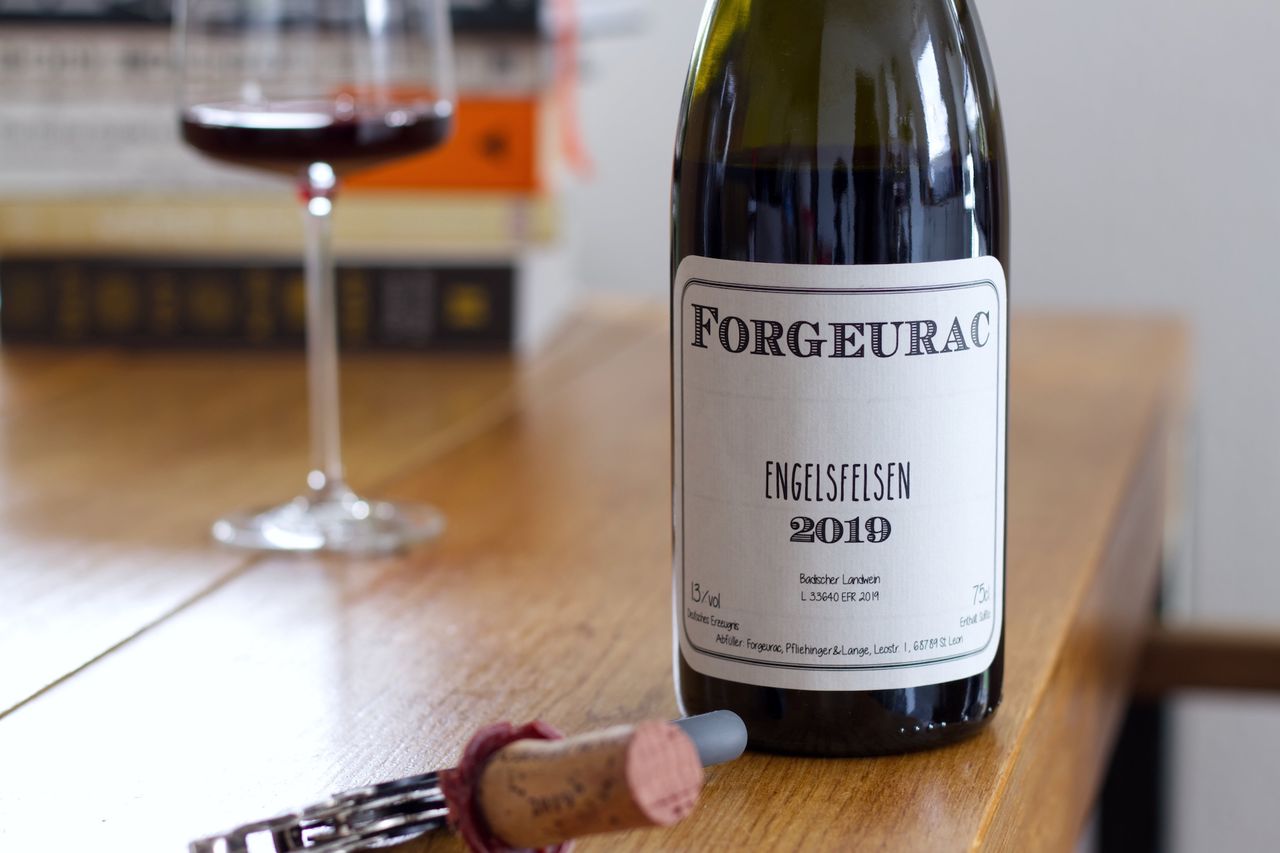 We fight our way through the wax capsule of a bottle of Forgeurac Engelsfelsen 2019 Pinot Noir and are more than rewarded for the effort.