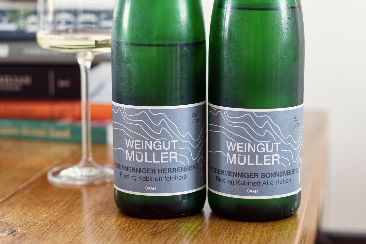 We drink two bottles of Riesling Kabinett 2018 from Stefan Müller's Niedermennig vineyards Herrenberg and Sonnenberg.