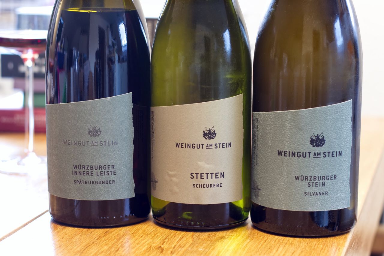 We drink from the winery Am Stein a bottle of Scheurebe Stetten 2021, a bottle of Silvaner Würzburger Stein 2020 and a bottle of Pinot Noir Würzburger Innere Leiste 2018.