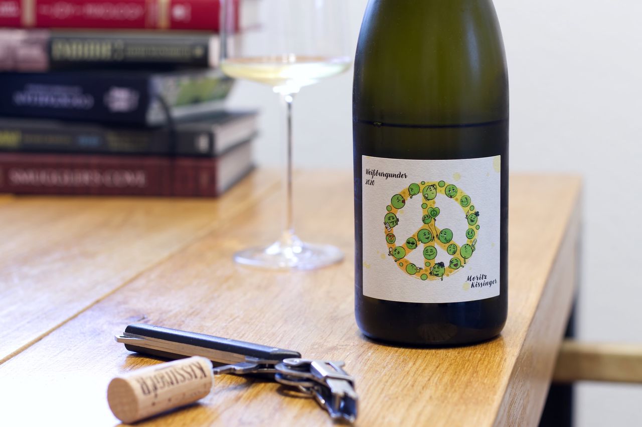 We drink a bottle of Pinot Blanc from 2020 from Moritz Kissinger.
