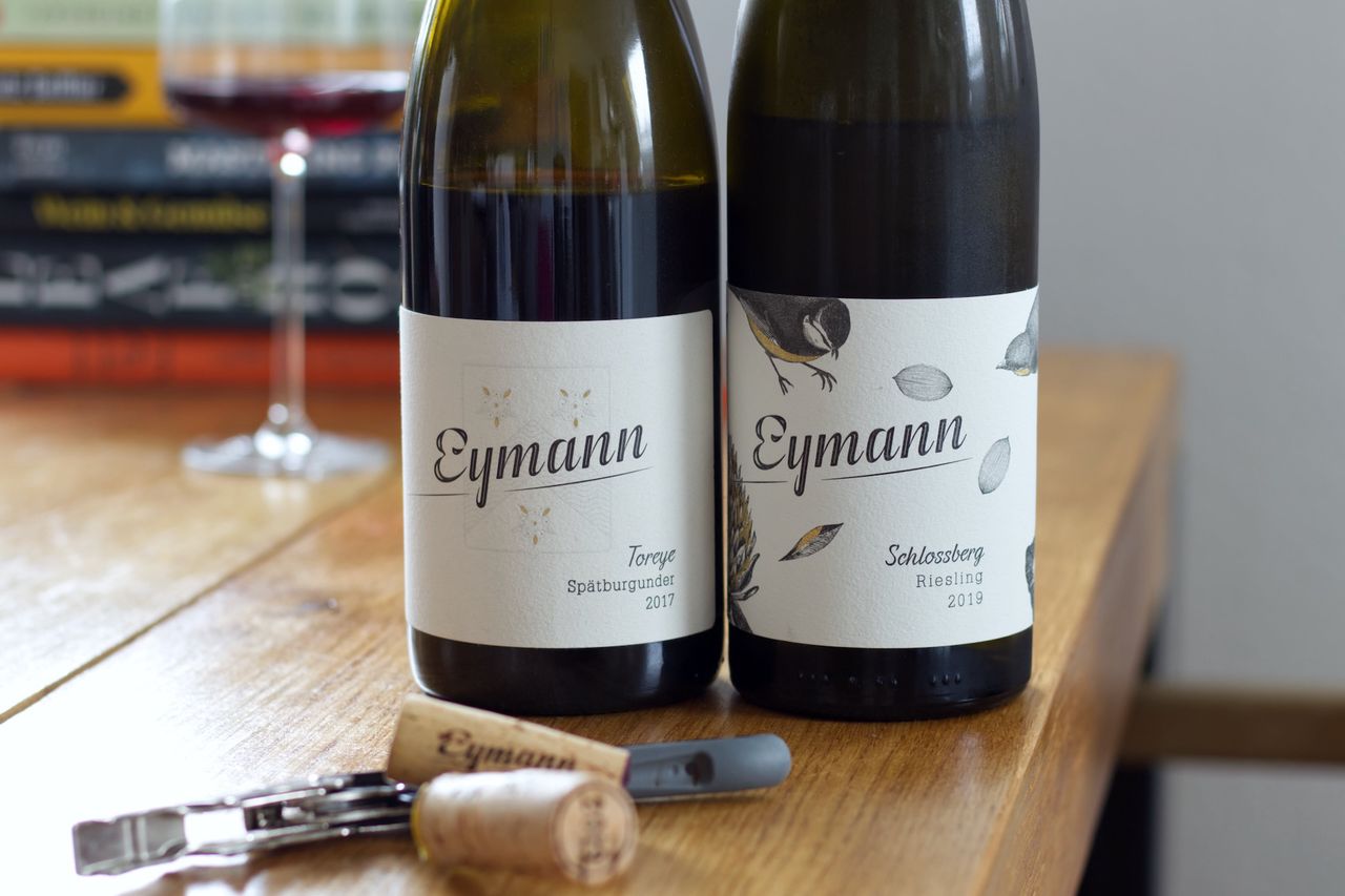 We drink a bottle of Toreye Pinot Noir 2017 and a Riesling Schlossberg 2019 from Weingut Eymann.