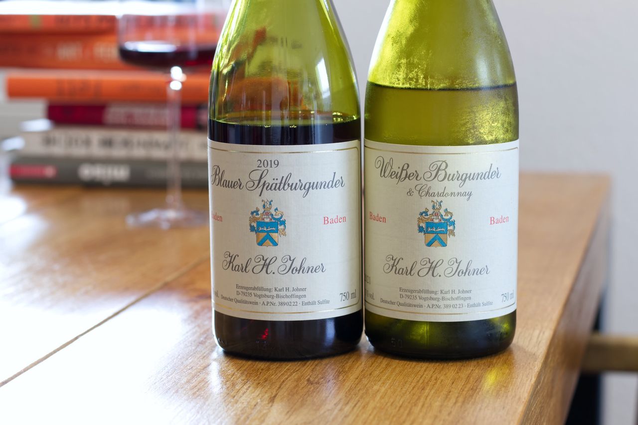 We drink a bottle of Weisser Burgunder and Chardonnay 2021 and a blue Pinot Noir from 2019 from the Johner winery in Baden.