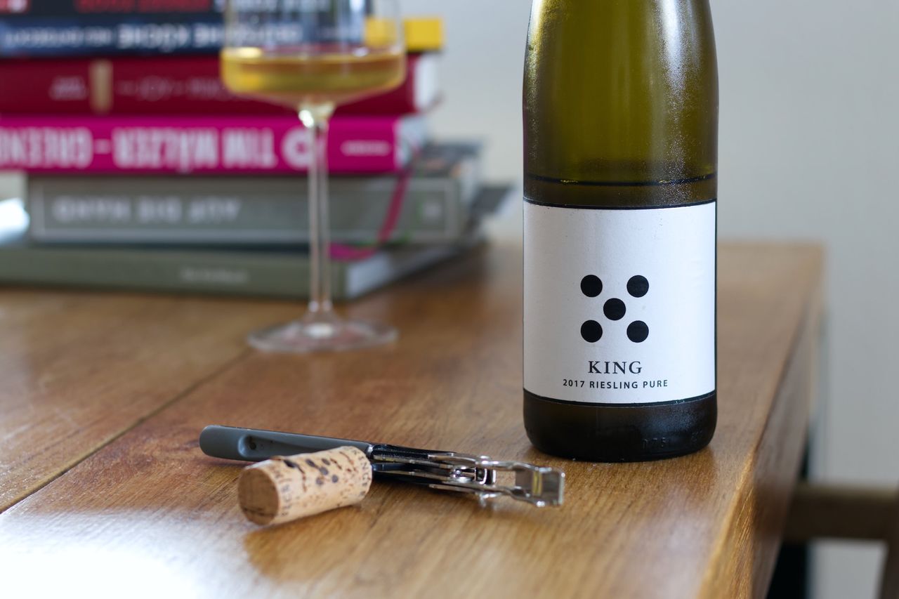 We drink a bottle of Riesling King 2017 from the Seckinger Winery in the Palatinate.