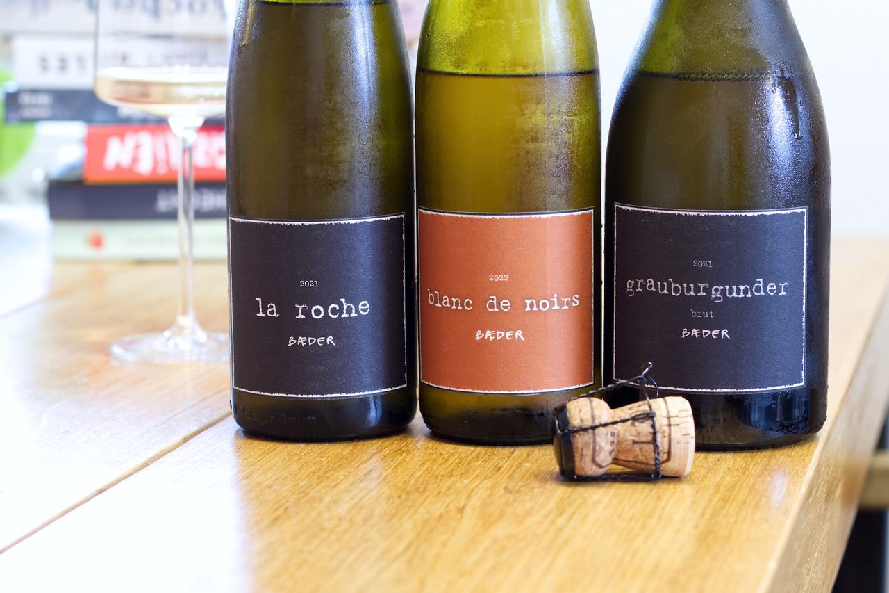 We drink a Pinot Gris Brut 2021, a bottle of Blanc de Noirs 2022 and a Riesling La Roche 2021 from the Bäder Winery in Rheinhessen.