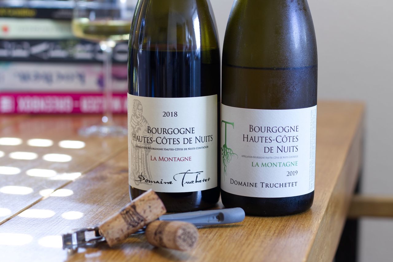 We drink from Burgundy from Domaine Truchetet Bourgogne Hautes-Côtes de Nuits La Montagne as Pinot Noir from 2018 and Chardonnay from 2019.