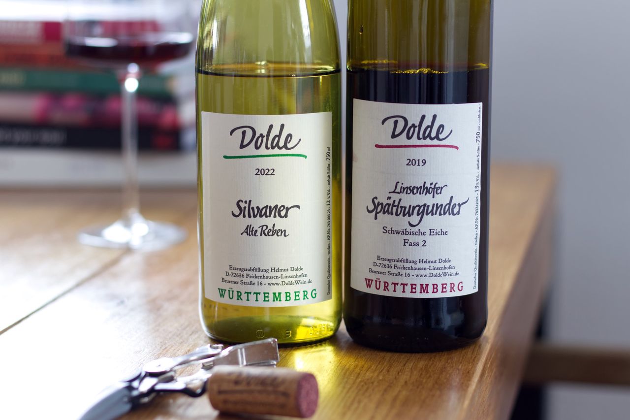 For New Year's Eve, the special bottles are brought up from the cellar. This year, they are a Silvaner and a Pinot Noir from the Dolde winery.