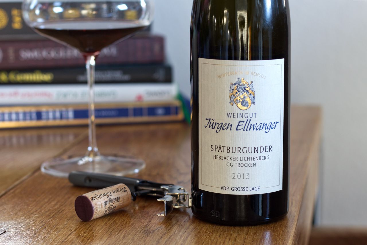 We drink a bottle of Spätburgunder 2013 from the Hebsacker Lichtenberg vineyard made by the winery Jürgen Ellwanger.
