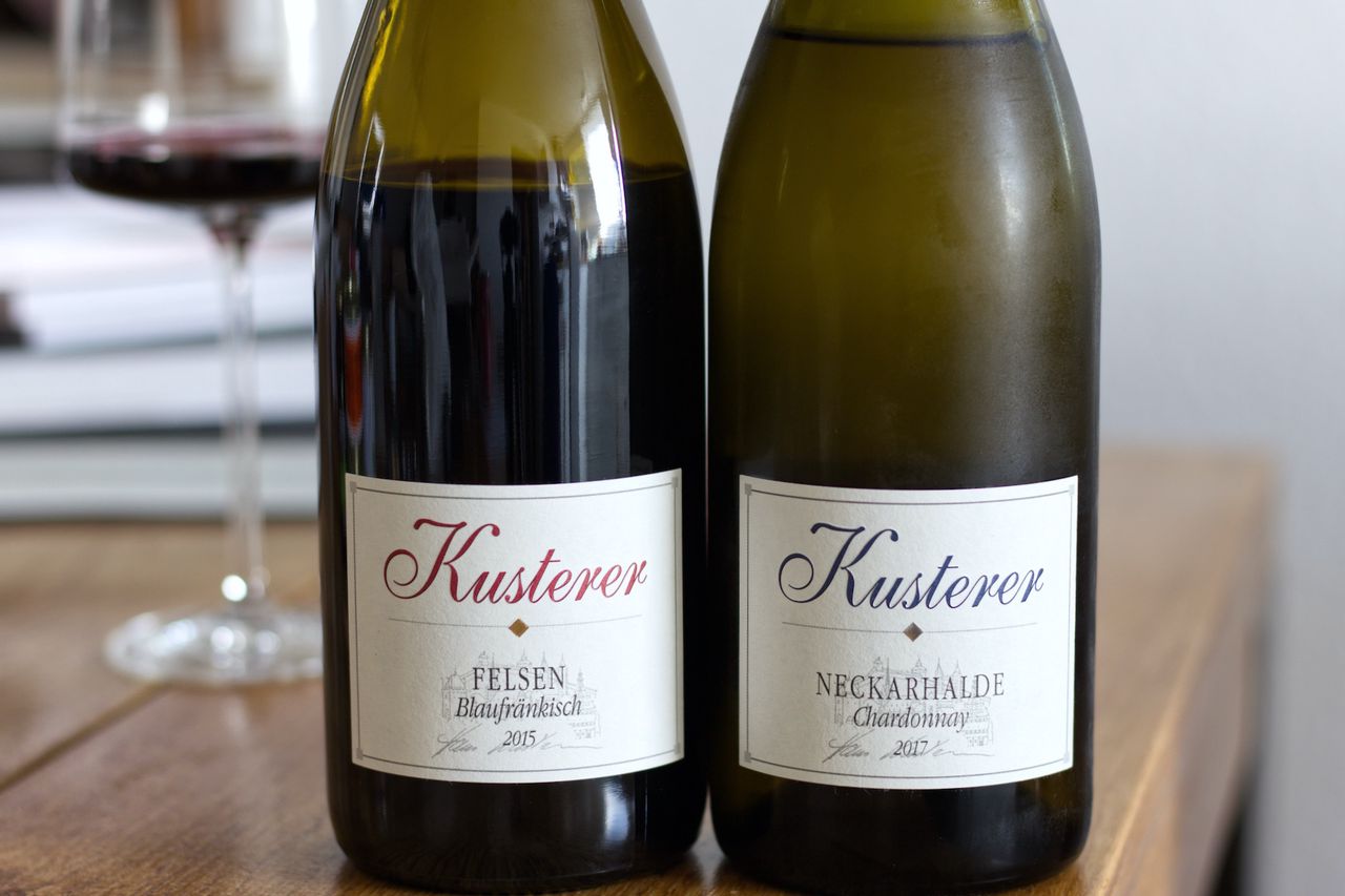 We drink a Chardonnay Neckarhalde from 2017 and a Blaufränkisch Felsen from 2015 from the Kusterer winery in Esslingen.